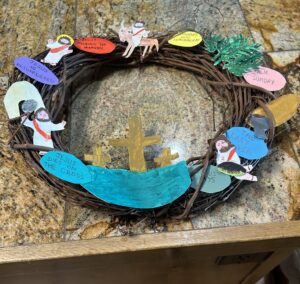Lenten season and our own Ms. Van Swift, the youth created a wreath symbolizing the walk through Holy Week. It is amazing and the youth created the characters and discussed the powerful message of Christ’s Passion. This wreath is displayed in Palen Hall – go check it out! Thank you Ms. Van for your artistic inspiration. Our youth love to create things!